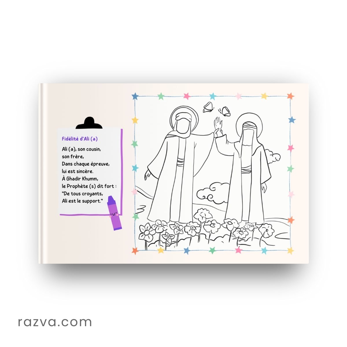 Avec des dessins adaptés et des textes poétiques simples, ce livre permet aux enfants d’interagir avec leur foi à travers l’art, tout en apprenant les valeurs transmises par le Prophète (s).